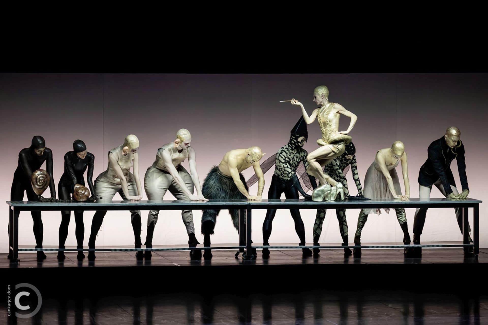 Tudi kostumografija Lea Kulaša poglobljeno sledi koreografski dramatiki. V drugem dejanju Valpurgine noči smo priče karikiranim človeškim dušam: polžji spolzko plazeči se eleganci, ali dvojčkom obloženih bokov ter ozadja z velikanskimi ušesi in nosnim trobilom…pa še ostalemu neopredeljenemu napuhu karikiranih gest ter opredeljene kostumski zasnove.