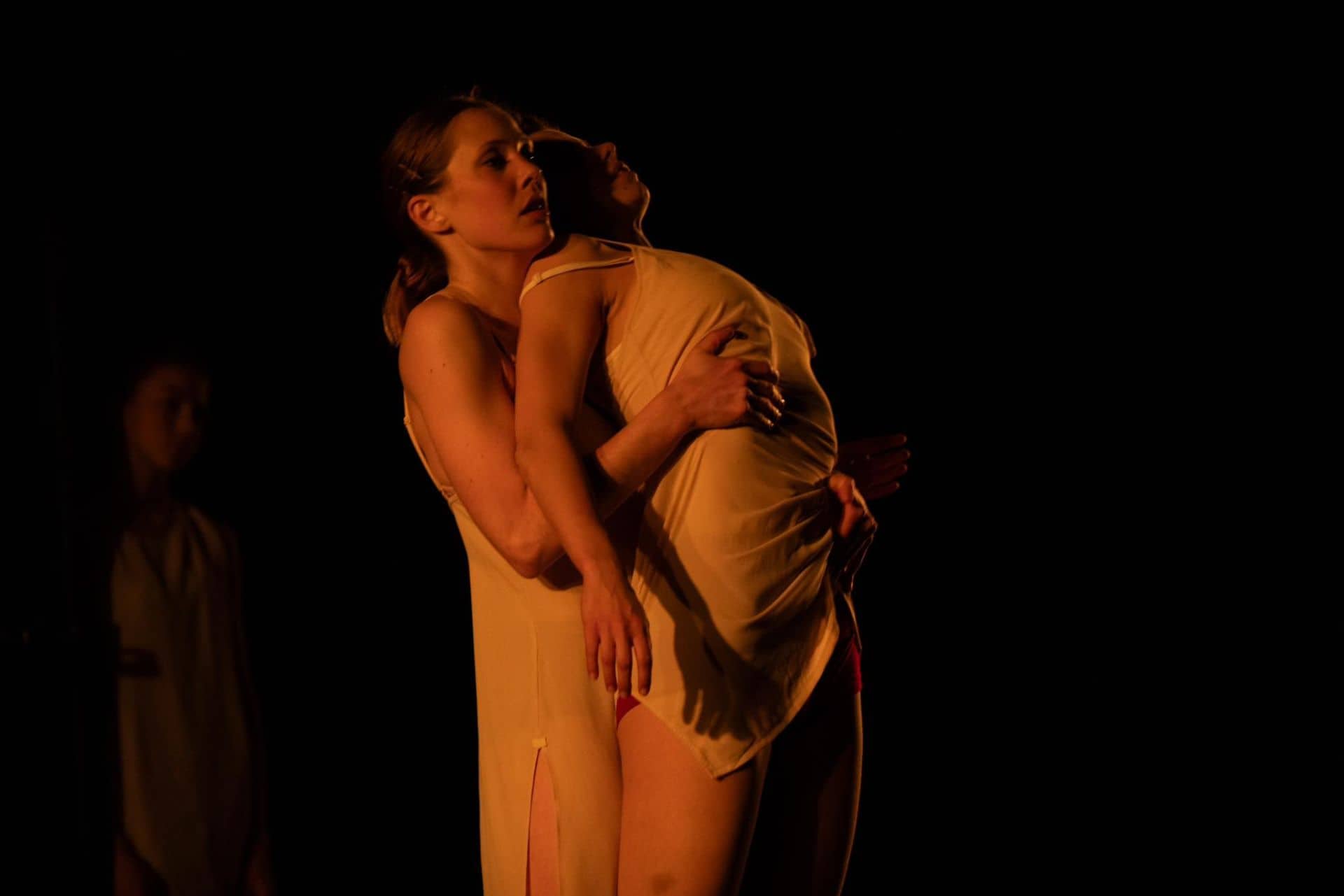 Medtem, ko je Tjaša odeta v mladostni svetli kostum plesne širine (kostumografija: Ana Meljo), Alenko pokriva temno oblačilo. Tjašina plesna podoba je navdihnjena z žarom njenih let, je lahkotna, igriva in velikopotezna v svojih širinah gibalne izraznosti ter zračnih vrtavk ter zamrznitev v trenutkih razmisleka. Njej v kontrast se Patricija bori s svojo potlačeno in zatajeno gmoto čustev, ko sledijo krči, ponavljajoči se padci in dvigi tresočega se teles, ko sledi beg, predaja, tudi podpora odprtih dlani. Predstavljeno scensko vsebnost dveh čustvenih skrajnosti podpira tako svetloba kot ambientalna glasba, z dovolj ritma in čustvene impresije, ki sledi plesnim vsebinam (glasba: August Adrian Braatz).