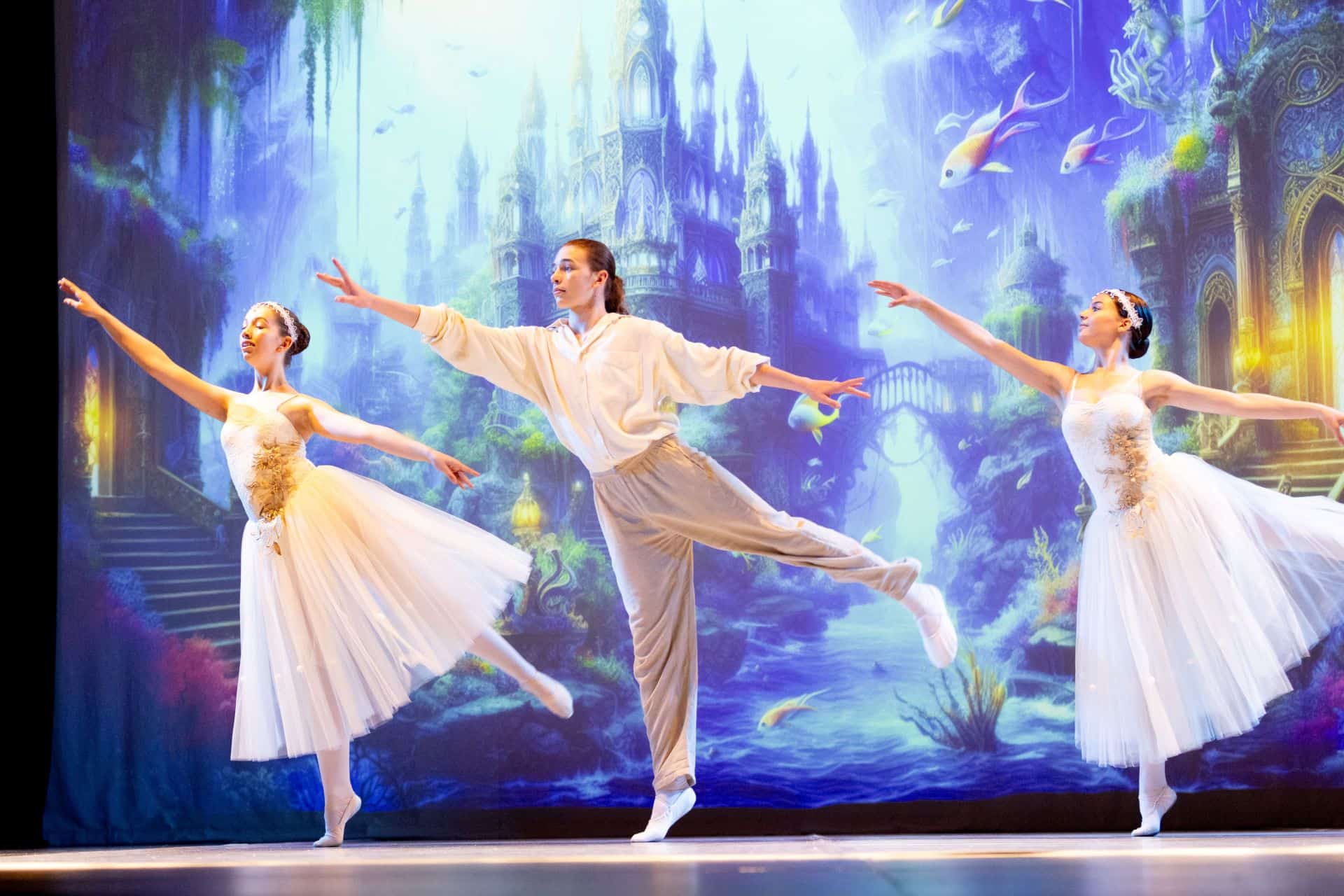Zahtevnejše baletne koreografije so zaplesale morske deklice, morske zvezde, skrivnostne meduze in školjke bisernice v triu z Lovrom Zajcem. Ples valov nas je popeljal na plažo, kjer je potekala prava baletna zabava.