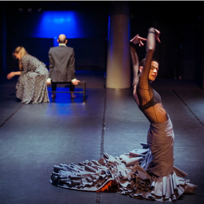 Preostale uprizoritve so navduševale Pirančane na Tartinijevem trgu 9. Festivala plesa, množico turistov in prebivalce Ljubljane na odprti sceni Kongresnega trga v Ljubljani, na zaključku Festivala sodobnega plesa 8Front@ v Murski Soboti, na odprtju letošnjega Festivala 48. Borštnikovo srečanje v Mariboru na Velikem odru SNG Opere in baleta Maribor in tokrat še vedno v prepolni dvorani PTL obeh novembrskih večerov, ter v odlični plesni in igralski manifestaciji Jette Ostan Vejrup in Borisa Ostana, ki sta pristno interpretirala zakonca Mlakar, obenem pa se predstavila kot par dveh nacionalnosti, ki ju združuje gledališka umetnost tako kot nekoč Mlakarjeva, ki sta se z vsem srcem predala plesni umetnosti. S svojo enkratno plesno manifestacijo se je pridružil še par Rosana Hribar in Gregor Luštek, ki sta pripovedovala svojo življenjsko zgodbo in iskala vzporednice z zakonskim parom Mlakar ter z njihovim skupnim življenjskim stičiščem Novim mestom. … Ana Pandur, Jette Ostan Vejrup in Boris Ostan … (Foto: Borut Peterlin)