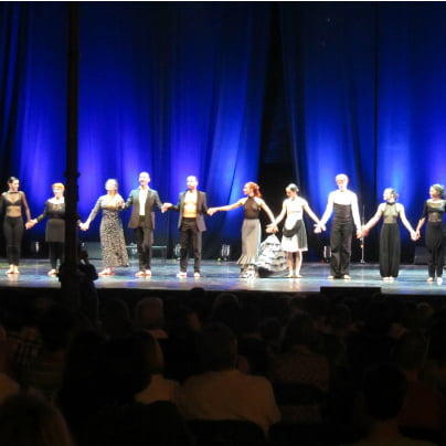 Izkazalo pa se je, da je predstava Korak v dvoje po Pii in Pinu predstava plesnih parov (naštela sem jih kar osem), tistih, ki so nastopali v času njenih 18 uprizoritev in ki so pripomogli k obujanju plesnega spomina na Pio in Pina po premieri, ki se je zgodila 13. decembra 2012 v Novem mestu in v produkciji Anton Podbevšek teatra. Lani je v Novem mestu steklo devet uprizoritev te predstave, na sceni PTL pa še dve. … plesni par Ostan & Ostan …