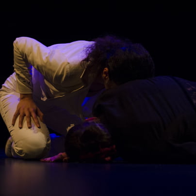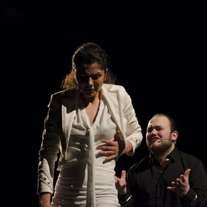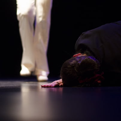 Kompozicijska zvrst farruca se v gledališkem listu (grafično oblikovanje Anja Mejač) omenja kot novejša oblika flamenka obogatena z raznovrstnimi vplivi in inštrumenti. V četrti plesno-glasbeni skici Sanje / Farruca se izlije novejša kompozicijska oblika flamenka farruca, ko zvočna milina violinskih strun pričara sanje in omili zapornikov boj s samim seboj, sami kompoziciji pa doda širino melodične spevnosti violinistka Urška Jeraj. Svoj zadnji ples v elegantni kostumski črnini (kostumografija Shash) zaveje Anja, zapornikova Vrtnica, in izpleše svojo minljivost, svoj življenjski dih, medtem ko zapornik obtiči v bolečih iluzijah svojih sanj, obdanimi z rešetkami. … (Foto: Patrick Senekovič)