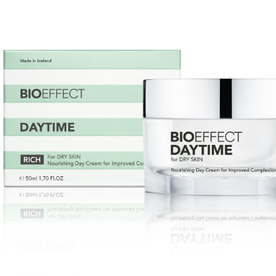 EGF je izredno pomemben del naravnega signalizacijskega procesa, ki ga kožne celice uporabljajo za prenos informacij o zdravem in mladostnem videzu kože. Njegovo odkritje je leta 1986 osvojilo Nobelovo nagrado za medicino. Bioeffect je rezultat dolgoletnih raziskav islandskih znanstvenikov, ki so odkrili, kako se lahko molekule kože reproducirajo v rastlinah. To odkritje je privedlo do še enega velikega znanstvenega preboja, saj so z njim zagotovili zadostno čistost in kakovost EGF, ki zagotavlja resnično vidne učinke na koži. Poleg EGF celičnega aktivatorja, krema Bioeffect Daytime za suho kožo, vsebuje tudi unikatno kombinacijo sestavin, namenjenih negi občutljive suhe kože, kot sta čisti ekstrakt in shea maslo.