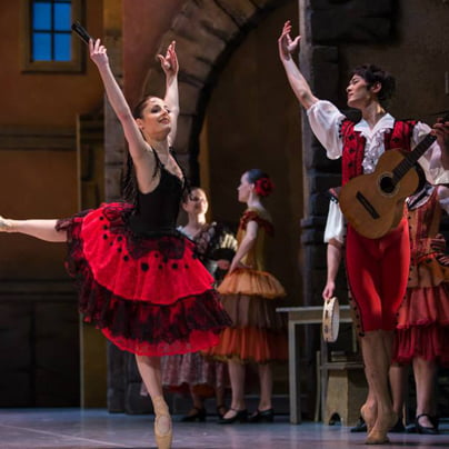 Pa še nekaj vsebine, da vas prepričam za ogled te temperamentne baletne poslastice. "Minkusov balet Don Kihot, narejen po Petipajevem scenariju in v koreografiji Gorskega je bil po premieri v Moskvi leta 1869 dobro sprejet in je v različnih obdelavah ostal na repertoarjih še mnogo let. Cervantesov Don Kihot je izhodišče baleta, v središču pa je ljubezenska zgodba med Kitri in Basilom. Gonilo zgodbe sta don Kihot in njegov oproda Sančo Pansa, poleg njiju pa špansko vzdušje ustvarjajo Mercedes, Espada, markiz Gamache, Kitrine prijateljice, Basilova prijatelja, toreadorji, cigani ter mnogi drugi. … (Foto: Darja Štravs Tisu)