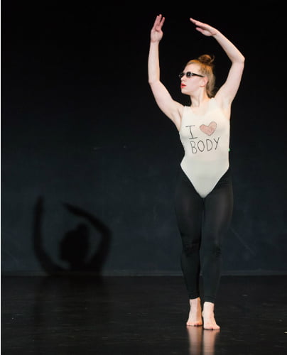 Zavajajoče telo je Maja Koražija naslovila svoj plesni solo, ko skuša ugotoviti, kako čustva vplivajo na njeno gibanje, in obratno, kako gibanje vpliva na njena čustva. Svoje plesne izlive je pospremila z video zapisi o jezi, ki ji daje energijo vzgona, potem pa že nastopi novo stališče, da žalost in jeza prihajata druga z drugo. V svojem plesnem izlivu je dinamično spreminjala gibalno strukturo in se vedno znova v pravem času ustavljala z namenom, da bi zaznala nov občutek in novo spodbudo, na koncu pa ugotovila, da gib ali resignacija izvirata iz nje same. … Nika Ajdnik …