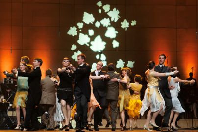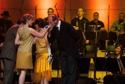 Sledili smo znanim tipom plesov: čardaš, šotiš, sibenšrit, polka, kolo … Na mestnem plesišču so se plesalci zavrteli v ritmih fokstrota, valčka in tanga. Prizor je bil sproščen in prepričljiv, saj plesi niso zašli v ekshibicijo, ampak so se držali osnovnih korakov in figur – tako pač kot se je plesalo na običajnih plesnih zabavah nižjega meščanstva. Tudi kostumi v slogu dvajsetih let so bili preprosti – nobenih visokih damskih toalet in gospodje v običajnih temnih, nekateri pa tudi v manj konvencionalnih sivih in rjavih oblekah. Prikaz je bil smiseln, saj vemo, da stroge meje med plesom ljudstva in fevdalne, plemiške, aristokratske gospode ter pozneje meščanstva ni bilo, saj je šlo ves čas za vplivanje v obeh smereh. Plesne postavitve celotne predstave so prispevali Katja Kavkler, Klemen Dovč in dr. Bruno Ravnikar. Škoda, da je v gledališkem listu manjkala razlaga o imenih in značilnostih posameznih plesov ter ostalega materiala, saj ni samo po sebi umevno, da jih občinstvo zmore prav vse na pogled prepoznati oziroma poznati. … otroci. (Foto: Patricija Belak in Kristina Bucik)
