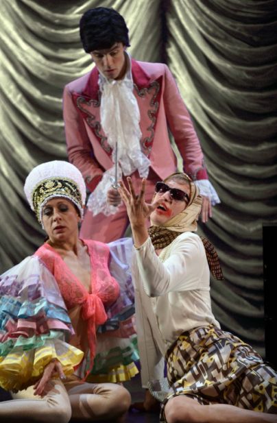 Prvič sodeluje v gledališču z igralci, katerih govora ne razume, kar je bil svojevrsten izziv zanj in za igralce, predvsem pa so si zaupali. Izbrani igralci, ki igrajo, pojejo in plešejo, skratka odličen tim animatorjev, pevcev, tudi performarjev in dobrih plesalcev, po svojih igralskih presežkih pa že itak razpoznavni: Primož Bezjak, Aleš Hadalin k.g., Uroš Kaurin, Boris Kos, Maruša Oblak in Blaž Šef. Osrednja osebnost, tudi najmočnejša scena, steče prav na začetku, ko se med sediščem Velike dvorane spusti veličastni kurent, na odru pa ga dočaka Hadalin s harmoniko, in na sceni viden veliki beli krog, seveda blaga.