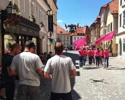 Že prejšnja tri leta smo s plesno šolo Bolero sodelovali in tekli z Europo Donno, vendar tokrat se bo plesalo. Z veseljem sem se odzval povabilu, da pripravim koreografijo, ki se bo plesala po vsej Sloveniji. Tako sva s skupnimi močmi s sodelavko Živo Laterner pripravila in naučila koreografijo bolnice, ki sem jim nadel imel kar Rozike. Pridno so ob sredah hodile na vaje in s svojim optimizmom še dodatno osvetlile Bolerove plesne dvorane. Prejšnji teden pa smo si kljub napornim pripravam naših tekmovalcev na državno prvenstvo vzeli čas in vsi skupaj posneli promocijski videospot na pesem Lep je dan od Anje Rupel, ki bo ob tej priložnost zazvenel tudi v angleščini. Vroč in sončen petek je bil kot nalašč za snemalni dan, ki je potekal od zgodaj zjutraj do pozno popoldne. Začeli smo na Ljubljanskem gradu in končali na Tromostvju. Predvsem pa so bile občudovanja vredne Rozike, saj nekatere še hodijo na kemoterapijo, a se kljub žgočemu soncu niso predale. Celotna ekipa, ki je štela skoraj 100 ljudi, je bila fenomenalna, posebej pa režiser Žiga Zupančič s svojo ekipo Blueroom. Videospot, ki bo premierno zaživel konec poletja oz. v začetku jeseni, bo ozaveščal vse v Sloveniji kot tudi po Evropi o raku na dojki, hkrati pa vzpodbudil tako tiste, ki obvladajo ples, kot tiste, ki ga le radi gledajo, da bomo lahko vsi skupaj plesali, se naučili koreografijo in peli Lep je dan. Torej roza oktober ne bo le roza, ampak bo tudi plesen. (je za naš portal komentiral koreograf, plesalec in pedagog Matevž Česen snemanje spota za Europo Donno, združenje za boj proti raku dojk. Matevž je avtor koreografije na glasbo Anje Rupel Lep je dan, ki je nastajal na petkov strahotno vroč dan v režiji Žige Zupančiča in produkcijske skupine Blueroom.)