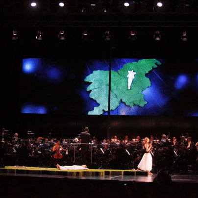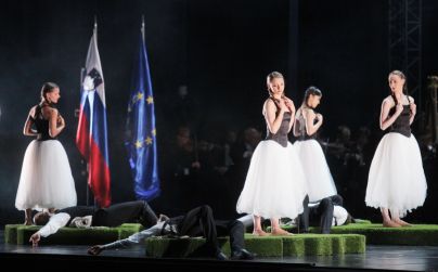 Na poletnem odru pred Kongresnim trgom v Ljubljani je 24. junija zvečer nastopilo devetdeset izvajalcev: orkester Slovenske Filharmonije pod vodstvom dirigenta Simona Robinsona, baletni ansambel pod umetniškim vodstvom in v koreografiji Edwarda Cluga, v koprodukciji SNG balet Maribor (Evgenija Koškina, Tijuana Križman Hudernik, Olesja Hartman, Asami Nakashima, Tetiana Svetlična, Matjaž Marin, Sergiu Moga, Sytze Jan Luske, Gaj Žmavc, Yuya Omaki ter dijak Konservatorija za glasbo in balet Maribor Aleksandar Trenevski). Na sceni je poleg orkestra, ki je izvajal novo skladbo Milka Lazarja ob solističnem muziciranju violončelistke Maruše Bogataj, za klavirjem je bil Milko Lazar, stekla še videoprojekcija Dena Boruca, k likovni niši predstave pa so doprinesli še scenograf Marko Japelj, kostumograf Leo Kulaš in Tomaž Premzi – oblikovanje svetlobe. …