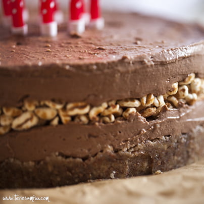 Danes vam torej predstavljam čokoladno presno torto za rojstni dan. Ta torta je brez indijskih oreškov, tako da ni nobenih predpriprav! Tortni obod naj bo 16 cm, tako da je torta lepo visoka. Recept na mojem blogu www.teresamisu.com