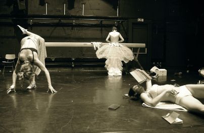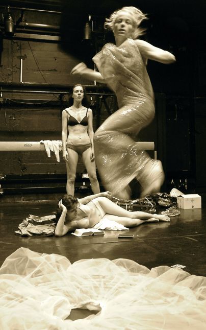 Na sceni je prisoten večji scenski element, telovadna greda, ki služi kot nadsedež plesalki Leji in je na koncu tudi njeno sprostitveno sedlo domnevnega lesenega konja. Po vseh straneh so nametane številne reklamne vrečke, sodobna ilustracija ženske današnjih nakupovalnih centrov. Nakupovalno omamo v obsesiji slačenja in preoblačenja izraža redkobesedna (Kordelija) Jelena, ki ves čas osvaja in ponuja svojo neizrečeno, vendar nazorno slikovito nemo ljubezen, tudi razkazuje in mazili lastno telo, ko pa spregovori, je napadalna in vulgarna, in seveda nič več Kordelija. Pred gledalci se torej predstavijo tri ženske podobe – elegantna z oblačili kraljevskih salonov obdana Jelena, sodobna in najbolj pristna Teja ter sila aktivna Leja. Leja je hkrati tudi najbolj nepredvidljiva, kar nakazuje že njen kontrasten kostum – črn telovnik in krilo iz belega tila, je plesalka, na koncu pa še jahačica na svoji telovadni gredi. In je ena tistih delavnih žensk, ki se trudi, je ves čas aktivna, ko pleše in se giba v raznovrstnih oblikah plesnih trendov, je gibčna hiphoperka, balerina visokih nog in pravih skokov, tudi telovadka vrtljivih koles, skratka sodobna gibalka.