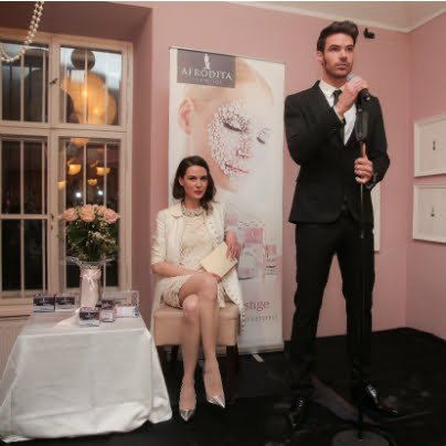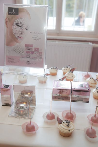 Znano je, da izvleček belih biserov izboljša navlaženost in metabolizem kože, pomaga vzdrževati njen tonus ter deluje antioksidativno. Judita Železnik in Mišela Firšt Vučenović (tržno komuniciranje Kozmetike Afrodita) v družbi Ane Marije Mitić.