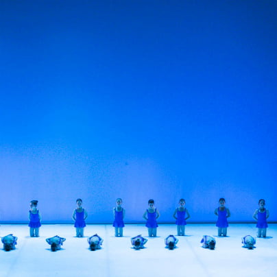 V stilu sodobnega performansa so dijaki 3. in 4. letnika dočakali gledalce, se smukali in nasmihali, sedeli na stolih in gledalce tudi vljudno popeljali do njihovih prostorov, vmes se raztegovali, zaigrali na klavirju in vadbeno segrevali, ves čas pa nudili simpatično improviziran program, ko so se mladenke spretno pregibale ter plazile v belih vadbenih tutujih. Ko pa so gledalci zasedli vsa prosta mesta, so tekle talne inspiracije, kot je valjanje, so obrati, je plazenje po tleh pred avditorijem in na delu odra pred spuščeno zaveso, nalaganje teles eno na drugo, se vrstili prevali, in še kaj, kar je zabavalo njih in prisotne. Potem so akterji počasi zdrseli proti zavesam in nevidno izginili za spuščenimi tekstilijami. …