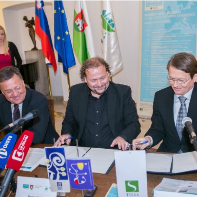Ljubljanski župan Zoran Janković, direktor in umetniški vodja festivala Darko Brlek ter predsednik uprave zavarovalnice Tilia Andrej Kavšek na novinarski konferenci.