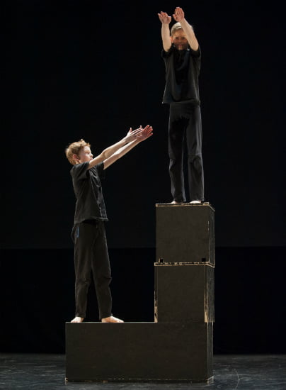 V času odraščanja je vsak ustvarjalni proces vezan ne le neposredno na leto rojstva, ampak tudi na mesece, ki tečejo in prinašajo nova zaporedja zrelostnih spoznanj pri vsakem posameznem mladostniku drugače. Tako so tudi plesni ustvarjalci skupine A2 prežeti s pestrim razmišljanjem in poglabljanjem v dano tematiko, ki ni več izključno vezana na sam izbor zunanje forme, ampak že samozavestno tudi sami videno prilagajajo lastnem ustvarjalnem navdihu in postavljajo v svoje specifične okvire, primerne stopnji lastnega dozorevanja. … Aleks Leon Novak in Patrik Petan; Gradiva noč in dan …