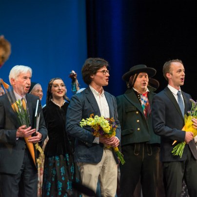 Na zaključku programa je sledila še zahvala AFS France Marolt, ki jo je izrekel v svojem zaključnem govoru novi umetniški vodja Simetinger. Ne vem, ali v protokolu ni bilo predvideno ali je zmanjkalo časa, kajti pogrešali smo še kako besedo častnega slavljenca Mirka Ramovša. In konec še ni bil pravi konec Gala koncerta Rast, kajti konec se je še spletal v skupinskem prepevanju ljudske pesmi Nocoj je ena luštna noč, ki jo je skupaj z nastopajočimi gromko zapela tudi publika napolnjene Linhartove dvorne, in to ne le enkrat.