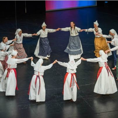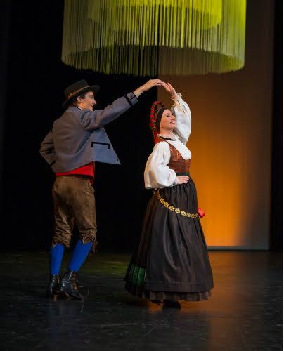 Plesalci AFS France Marolt so že tako uigrani, da na oder poleg plesa in ubranega petja prinašajo še veseli narodni duh, ki ga znajo prav dobro upodobiti v svojih plesnih vzgibih, pogledih in v obrazni mimiki vodji plesnih skupin: Kristina Šircelj, Hana Brezovnik; svetovalec Teri Sedej). Kostumi niso uniforme, ampak popestreni z detajli, kot je pri ženskah raznolikost pisanih predpasnikov ali gorenjske avbe pa peče in rute, med njimi pa tudi nepokrite glave še neporočenih mladenk pa klobuki širokih in navadnih obodov, tudi s pripetimi visečimi trakovi, belo-modre- rdeče kokarde in še kučma se najde. Posebej je navduševala noša ljubljanskih meščanov in meščank, tudi iz okoliša in Škofje Loke, strogo elegantna  črna oblačila pa peče na petelinčka, ki pokrivajo cel hrbet ob čipkastih okrasih pridnih ženskih in ustvarjalnih rok.