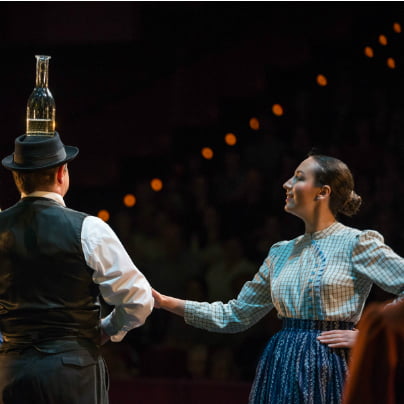 V lično postavljeni sceni (scenogarf Urban Haber) resastih svetlečih oblik in v dobro zastavljenem oblikovanju luči (Nanja Bertok Dragič) ter pravšnjem ozvočenju (Marko Turel) je devetdesetminutna predstava Rast oživela čase ob koncu devetnajstega stoletja vsaj sodeč po pestri kostumski opravi (kostumografija Katarina Štrimpf) in po stiliziranih korakih, ki se vse bolj približujejo uglajenosti plesnih dvoran časa. V tej uri in pol je stekla dobro scensko zasnovana povorka narodnih plesnih motivov, radoživosti in lepot glasbeno-plesne dediščine slovenskih pokrajin, tiste, ki že beleži vplive tako meščanske srenje kot one stanovske in evropske.