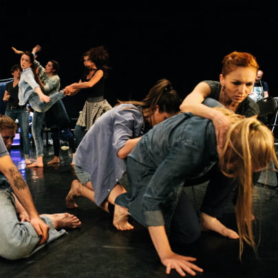 Predstava se dogaja v treh nivojih, v treh skicah, ki neposredno in sočasno tečejo na odrski površini. V izolacijski "kletki" se spremlja dnevni ritual nje, "madame", v dolgi večerni obleki z malim izbranim klobučkom, kako stopica ali sedi v visokih petah s cigareto v roki. V ospredju odra pa vneto in skoraj celo uro neutrudno vejejo sodobno koreografsko strukturo plesalci, tu in tam kak pade, se sliši jok in stok, tudi smeh …, se izlušči solistični utrip, ki še posebej zasije v trenutku sola Jureta Mastena. Ustvarjali in plesali so: Alla Abramova, Maja Arzenšek, Špela Bajželj, Lina Golob, Rebeka Hanžel, Katarina Barbara Kavčič, Aleks Kodeks, Alja Lackovič, Petra Peček, Julija Pečnikar, Ajda Pfifer, Tjaša Vugrin, Jure Masten, Vita Osojnik in Marko Urbanek. …