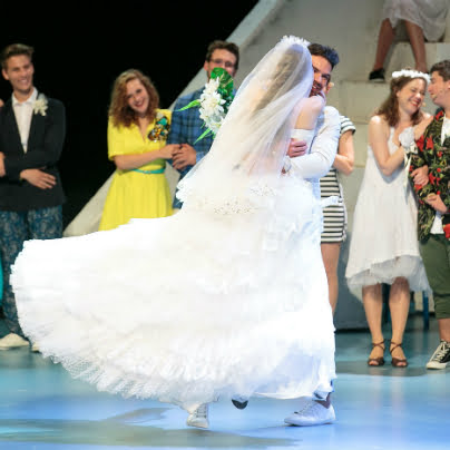Glavna oseba te poletne melodične zgodbe je dvajsetletna Sophie/Lea Bartha, ki se odloči  čim prej poročiti, da ne bi njen bodoči otrok ostal brez očeta, tako kot je bila ona, ki ni nikoli od svoje mame Donne/Simona Vodopivec Franko izvedela imena očeta. K poroki sta povabljeni tudi mamini prijateljici: Rosie/Alenka Godec in Tonya/Damjana Golavšek, tako da spevnega obujanja spominov in nekdanjih dni v tej zgodbi nikakor ne manjka, povrh pa še skoraj vsaki misli sledi ena od pesmi.