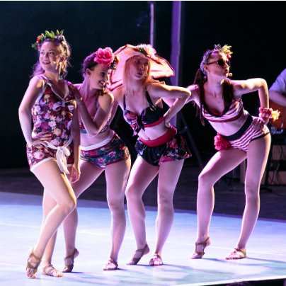 Na otoku so prisotni še drugi prijatelji in člani strežbe: Pepper/Tim Lončar, Eddie/ Luka Sešek, Lisa/Maša Tiselj, Laura Ivančič, Ali/Tanja Pečenko, Urška Koželj in duhovnik Patrik Greblo. In ker je na takem otoku poleti prepolno ljudi, glavne dogodke in junake spremlja še množica nastopajočih, zboristi in plesalci, in povrh še domorodke, kar 24 jih je, in v pesmi ter plesnem vrtincu zaobjamejo prizorišče in trosijo obilje mladostnega elana ter nasmejanega optimizma. Oder v Križankah ni velik, kljub temu se je množica nastopajočih v koreografskem toku znanih plesnih atrakcij in motivov skladno pretakala po njem, kot bi jo nosil veter, in to tako določeno ter izpiljeno, da ni bilo ne zastojev in ne nepotrebnih poti, vse pa v skladju ritma, melodij ter mladostne razigranosti, ko je žar veselih oči obsijal oder in so nasmejani obrazi trosili žarke sreče.