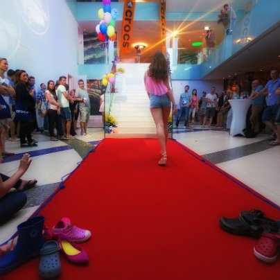 Predstavitev CrocsTM kolekcije pomlad/poletje 2016 so na dogodku popestrili z modeli na modni reviji, kjer so se sprehajali po modni pisti v pestri CrocsTM kolekciji. Naj opozorimo, da so bili predstavljeni originalni CrocsTM in ne ponaredki, kot jih nekateri pogosto zamenjujejo za slednje. Že poznate razliko med originali in ponaredki? Na prvi pogled je težko razločiti ponaredek od originala. Glavna razlika je seveda, da na ponaredku ni napisa crocs, ki se sicer na originalu vedno pojavi. Po daljši uporabi se razlika opazi zelo preprosto. Ponaredki se raztegnejo in postanejo zelo neudobni, hitro se zasmradijo, v veliko primerih pa se zaradi zelo slabih materialov, ki so velikokrat sumljivega izvora, na koži pojavijo alergične reakcije in žulji. Pri originalih takšnega primera, predvsem zaradi zelo stroge kontrole kakovosti, še nismo imeli. Predlagamo vam eno izmed metod, kako prepoznati original CrocsTM, ki jo lahko preizkusite popolnoma sami. Preprosto vržete CrocsTM na tla in ta bo vedno padel na podplat. Razlog, zakaj se to zgodi, leži predvsem v tem, da jih lahko pred odhodom v morje ali bazen z lahkoto odvržemo, in ko pridemo ven, jih nato z lahkoto takoj obujemo.
