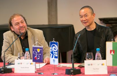 Svetovna zvezda Tan Dun na tiskovni konferenci pred odprtjem festivala.