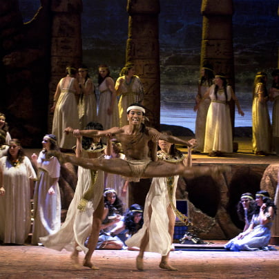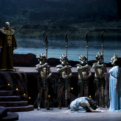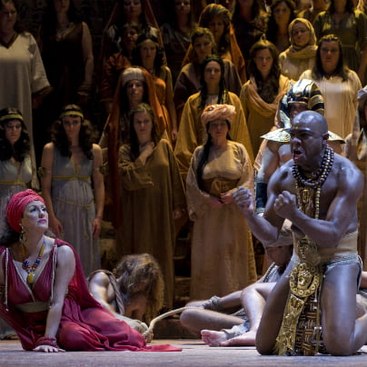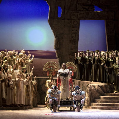 Eno najbolj priljubljenih velikih oper o ljubezni med zmagovalnim egipčanskim poveljnikom in zasužnjeno etiopsko princeso je Giuseppe Verdi napisal na vrhuncu ustvarjalnih moči, po naročilu egiptovskega kediva Ismaila Paše v počastitev odprtja Sueškega prekopa leta 1871. Zgodbo za opero je prispeval francoski egiptolog Edouard Mariette Bey, libreto pa Antonio Ghislanzoni. …