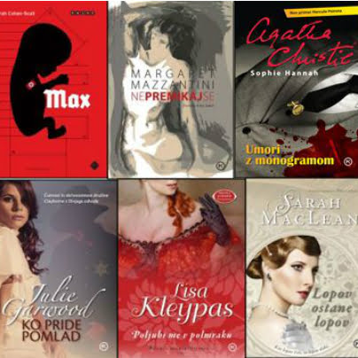 Predstavljamo vam nekaj knjižnih novosti, ki so izšle pri Cankarjevi založbi in Mladinski knjigi in vam bodo popestrile poletne dni in noči: Sarah Cohen-Scali, Max (prevedel Iztok Ilc); Margaret Mazzantini, Ne premikaj se (prevedla Anita Jadrič); Agatha Christie in Sophie Hannah, Umori z monogramom (prevedla Danica Križman); James Patterson, Prisega (prevedel Miro Mrak);Julie Garwood, Ko pride pomlad (prevedla Neža Kralj); Lisa Kleypas,Poljubi me v polmraku (prevedla Neža Kralj); Sarah Maclean, Lopov ostane lopov (prevedla Katarina Mahnič) in Ken Follett, Rob večnosti (prevedel Uroš Kalčič). … (cena: 32,96) …
