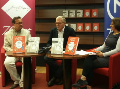 Andrej Blatnik, Slavko Pregl in Irena Matko Lukan na predstavitvi v ljubljanskem Konzorciju.