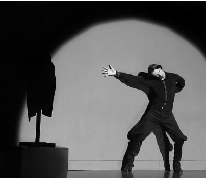 V želji, da izraznost telesa v celoti dobi prosto pot, se avtor prepusti inspiraciji tehnike baleta in sodobnega plesa, kar omogoča kompleksnejše scenske postavitve. Dramaturška nit se razvija iz naše iluzije o lastni neomejenosti, kar plesalec v začetnem delu izrazi ter telo koristi kot medij za oris iluzornosti naših "neomejenih" čustev, izkušenj, razumevanja …