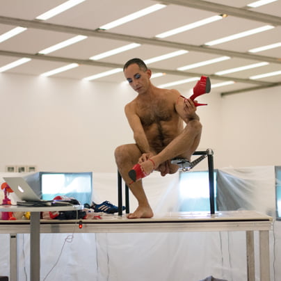 Antony Rizzi v Muzeju moderne umetnosti s predstavo Thr Artist is Here.