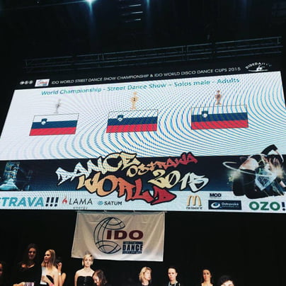 Minuli vikend, od 24. do 27. septembra, je na Češkem v Ostravi potekalo svetovno prvenstvo v street dance showu, hkrati pa tudi svetovni pokal v disco danceu. Slovenska reprezentanca pod vodstvom Tadeja Premka je štela nekaj več kot 500 plesalcev, ki so dokazali, da so kljub kratki pripravi, saj so bili vsi še pred mesecem dni na poletnih počitnicah, dosegli športno formo. Skupaj so si priplesali kar 36 medalj. V street dance showu smo Slovenci dobili 12 svetovnih prvakov od 15 možnih, prav toliko tudi vice svetovnih prvakov in za piko na i še sedem bronastih odličij. Res da so Slovenci prednjačili po številu prijavljenih tekmovanj, a takoj za njimi so bili Čehi s šestimi odličji in Slovaki s petimi medaljami. Poleg omenjenih držav se je tekmovanja udeležilo 14 držav in skupno nekaj več kot 2000 plesalcev. Čeprav so na uradni strani plesne organizacije IDO zapisali, da se je organizator trudil po najboljših močeh, je plesalce v dvorani precej zeblo, saj se je vse odvijalo nad ledom v ledeni dvorani, poleg tega pa je urnik precej prehiteval in plesalcem ter trenerjem spodbudil še nekaj nepotrebnega dodatnega adrenalina.