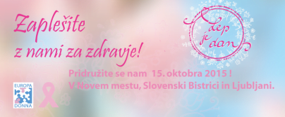 Članice Europe Donne bomo 15. oktobra 2015, na dan zdravih dojk, v Ljubljani, Novem mestu in Slovenski Bistrici zaplesale v družbi plesalcev in šolarjev. Na vseh lokacijah bomo začeli ob 10.30 uri; v Ljubljani na Cankarjevi ulici, v Novem mestu na Glavnem trgu pred Rotovžem in na grajskem dvorišču na Gradu v Slovenski Bistrici.