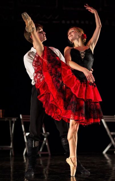 Carmen in njeni prijateljici Mercedes/Mateja Železnik in Frasquita/ Metka Beguš so praktično ves čas prisotne na sceni, vsak solistični nastop pa se v segmentih koreografskih prehodov tudi popolno in natančno zliva z dinamiko plešoče skupine. Na sceni se sledi tudi milini Don Josejeve zaročenke Michaele, ki jo je v eleganci baletne klasike zaplesala Lara Flega. Velika dvorana Španskih borcev je bila skoraj polna, in ker so to predvsem gledalci, ki na plesnih predstavah niso vajeni ploskanja med prizori, jih je v danem trenutku zdramila Carmen, navdušila skokoviti nastop Escamilla in vročica flamenka, da so se roke kar sklenile, ploskanje pa sledilo, tako kot se to dogaja na baletnih predstavah. … (foto: Fotoart Slovenija)