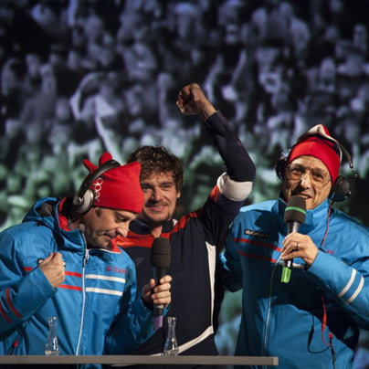 Na odru se živo nizajo naše vele smučarske zgodbe tistih dni, se sreča Ingemarja Stenmarka, Toneta Vogrinca, Filipa Gartnerja …, se obnovijo komentarji športnih reporterjev, odstira smučarski marketing in prevlada trdih stališč, se spozna trenerja in očeta Krešimirja, tudi oživijo vezi z mamo Zdenko, vloge pa odigrajo in se iz scene v sceno srečujejo igralci SMG: Damjana Černe, Željko Hrs, Uroš Maček in Matej Recer