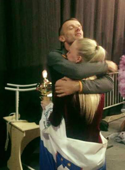 Maša Pušnik v objemu izjemnega koreografa in trenerja Mitje Popovskega iz Plesnega društva Kazina.