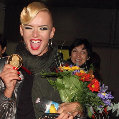 Nadija Bičkova s kolajno svetovnega prvenstva pred dvema letoma, na roki pa poročni prstan.