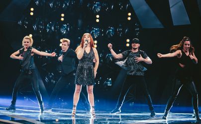 Biti del plesne ekipe je odličen občutek, je pa res, da si nisem upala privoščiti kaj več, ker sem se osredotočala na vokal. Koreografija je bila tako dobro narejena, da sem med plesalci delovala in se počutila odlično, tudi če sem izvedla par gibov. Željko je vedel, da nisem vajena tega in da smo imeli tudi premalo časa. Zato je svoje delo opravil več kot odlično in sem bila zelo zadovoljna. Željko je krasen in vedno poln pozitivne energije. … s plesalci Kazine. (Foto: Jani Ugrin)