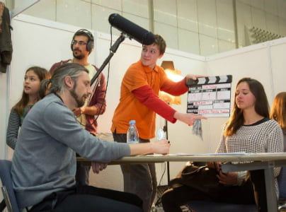 O programu in pomembnosti KB je spregovorila vodja kulturno-vzgojnega programa v CD Barbara Rogelj, tudi predstavila in povabila sogovornice, da s svojih zornih kotov osvetlijo dogajanje na bazarju ter povejo nekaj besed o izkušnjah in udeležbah na tem kulturnem programskem ter razstavnem prizorišču. Nataša Bucik, članica programskega odbora Kulturnega bazarja in nacionalna koordinatorka kulturno-umetnostne vzgoje, je tematiko bralne pismenosti in kulture pisanja opredelila kot usmeritev na poti do knjige, ki se ji programski odbor celovito posveča. Pomen KB v šolski praksi je podčrtala ravnateljica OŠ Dobravlje Mirjam Kalin, njihovi učitelji ter učenci so tudi redni obiskovalci tega kulturnega projekta, ki je pripomogel, da se je razširila ter oplemenitila tudi kulturna raven njihovega šolskega programa. Pridobili so filmsko dejavnost, ki je pred tem ni bilo, tudi začeli z aktivnim pripovedovanjem zgodb, nujno bralno pismenostjo, saj na njihovem območju govorijo enaindvajset različnih narečij. … (Foto: Nada Žgank) …
