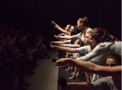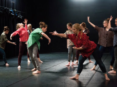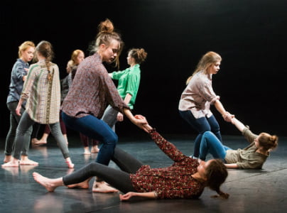 Njih petnajst – Agata Anžur, Gaja Drekonja, Zala Erznožnik Podreka, Jerneja Fekonja, Kaja Ferenc, Natja Hahn, Manja Kovač, Tajda Kužner, Olivera Milašinović, Nika Murtič, Iza Pantar, Bela Pikalo, Lara Rifl, Zoya Sagmeister Martini in Petra Slokan – je po odru razgrnilo svoja Mesta po prostoru, svoje plesne utrinke, zapisane v besedah: Hoja, Tek, Gib, Manifest Intervjuvanca – Kako se počutim?, Levo-desno, Levo-desno? Stop! Izpostavi se! Še enkrat … ne, Še enkrat … in Gremo! In so hodile, korakale, tekle vzvratno in na vse strani, se tudi postavljale v poze v pričakovanju prvega intervjuja ali možnega selfija, tudi razmišljale o sebi: Kako vemo, da sami sebi ne lažemo? in o tem, kaj je prostor moje prihodnosti. Prostor raziskovale in se izpostavljale v solističnih oblikah ter duetih tiste, ki jih očitno vleče na poti plesnega profesionalizma, vsaj sodeč po plesnih oazah, ki so jih zavele. Objemov ni manjkalo, kot bi se pripravljale na slovo, ki prekmalu prileti, in na glasbo Jocelyn Pook zavele Objem v slovo. Zala Erznožnik Podreka se je predstavila kot lirična pisateljica spisa Pred očmi si zarišem figuro … Tudi pesnica, ko je njen tekst uglasbil Matjaž Predanič, spevno pa zapelaBela Pikalo. …