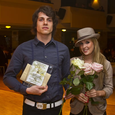 Nastop slovenske predstavnice ManuElle na letošnjem Eurosongu v Stockholmu še vedno buri duhove v plesnih krogih. ManuElla, ki se ji ni uspelo uvrstiti v finale in je pristala na štirinajstem mestu drugega polfinala med osemnajstimi nastopajočimi, je prepričana, da je dala vse od sebe, in takšna izjava je seveda popoln nesmisel, kajti kaj bi bilo, če bi dala samo pol od sebe ali nič. No, " vse od sebe" pa zagotovo ni opravičil slovenski koreograf in plesalec Anže Škrube, trenutno živeči v Los Angelesu, ki se je podpisal pod ManuEllin nastop oz. koreografijo. Anže Škrube, na fotografiji z nekdanjim dekletom Niko Kljun, na podelitvi nagrad Plesne zveze Slovenije.