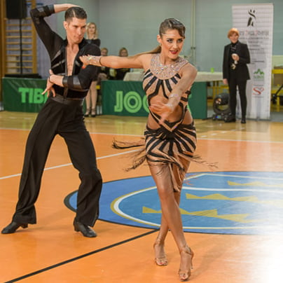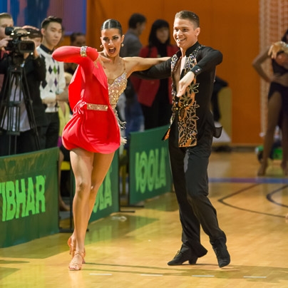 Bil sem uradni spremljevalec obeh naših parov na minulem evropskem prvenstvu v latinskoameriških plesih. Na hitro sem zamenjal planiranega Branka Bohaka, ki je moral na operacijo. Oba para treniram tudi sam tako, da ju poznam. Za Miho Vodičarja in Irino Vasilevsko je bila to prva velika skupna tekma. Zelo kratko smo skupaj trenirali pred evropskim, saj je Irina imela težave z vizo, ker ji je potekla turistična viza in komaj smo uredili bivalno vizo. Skupaj nista trenirala skoraj mesec dni. Njuna glavna trenerka je Alenka Bohak in seveda Davide Cacciari, ki se nekako ni strinjal, da odideta na to prvenstvo. Želel si je, da bi bil fokus svetovno prvenstvo, ki bo septembra na Kitajskem. Ampak vsi smo bili presenečeni, ker sta pokazala dober nastop. Zelo dobro sta odplesala in "komot" bi prišla v polfinale. Ne bom razmišljal politično, ker se s tem ne ukvarjam, ampak res sta pokazala dober ples. Glede plesa res nič ni manjkalo … samba, rumba, čačača … vse je bilo lepo odplesano, mogoče je manjkal edino performans. Irina je imela tudi dve odlični obleki, ki ju je skreirala Nataša Ambrož in sta poudarili njene dolge noge, še posebej roza obleka je bila še posebej kratka prav v ta namen (smeh). Irino poznam, saj sem jo treniral zadnjih pet let, in vesel sem bil, da se je Miha odzval mojemu predlogu, da poskusi plesati z njo, ko sta končala kariero z Nadijo (Bičkovo, op. a.). Irina je zelo mlada, stara je 21 let in ima perspektivo. Na plesišču je hitra in je videti dobro, med njo in Miho je pozitivna atmosfera in prepričan sem, da je to par, ki ga bomo lahko v prihodnjih treh letih videvali v finalih glede na to, kako se ples razvija. Miha Vodičar in Irina Vasilevska … (foto: Jernej Rihar)