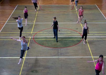Zadnji junijski teden je Metelkova ulica zaživela v novem mladostnem ritmu, prav v ritmu plesa, ko je od 27. junija pa do 1. julija 2016 potekala celodnevna Poletna plesna šola v organizaciji Javnega sklada RS za kulturne dejavnosti. Center dogajanja, prijateljevanja in srečevanj je bil kulturni center KULT3000; najmanjša stavba ob Muzejski ploščadi, tudi nekdanja vratarnica, kjer se že od leta 2013 vrstijo razstave in kulturna srečanja v organizaciji JSKD, ki je stavbo tudi prevzel pod svoje okrilje. V tistem junijskem vročinskem valu je bilo za starimi zidovi stavbe KULT3000 prav prijetno hladno in se je lahko dodatno hladilo z vodo, obogateno z meto in meliso, ali pa poživljalo s sadjem in kavo, se sladkalo s prekmursko gibanico ter prijateljevalo in sproščalo v igrah vrednot, ki so jih pripravili skupaj z društvom Nagib iz Maribora. Vrednote za vse čase sta pripravili Petra Hazabent in Ajda Tomažin, so človeške, razpoznavne in veljavne, so tiste znane: ljubezen, lojalnost, poštenost, smeh, svoboda … Že ob vhodu je bil vsak udeleženec PPŠ povabljen in imel možnost izvleči svojo vrednoto iz danega kupa, ki je bila hkrati tudi del vstopnice za plesne delavnice, lahko tudi razpoznavni znak za sorodno dušo z enako vrednoto, tudi možno povabilo kakšne druge vrednote k igri antidepresivov, kot je to bil športni duet v igranju ping-ponga na ozki leseni mizi, tudi zabavno tekmovanje v preskakovanju in spletanju vrvi in še kaj. Dvorana na Taboru v Ljubljani. (Foto: Tomaž Črnej)
