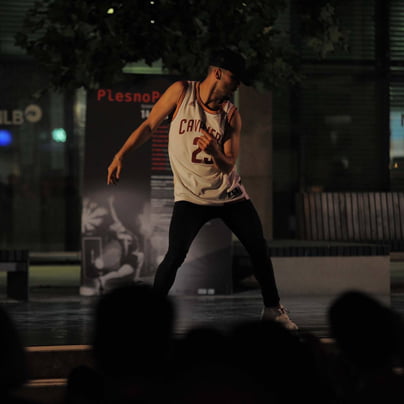 Miha Furlan prihaja iz Postojne, tu se ga spominjajo, kako je še pred nekaj leti kot njihov tečajnik poplesaval na Plesnih poletjih, tokrat pa se predstavil s svojo skupino, ki jo je korakoma postavljal na oder, da bi v hip in hop ritmu noge poskakovale, kot bi bile na gumicah, mladost pa samozavestno zaplesala svoj priljubljeni ritem hitrih premikov in preobratov. … EZtwins … (foto: Aneja & Nastja Črnigoj)Enej & Žiga Jurčič/EZtwins nista nič manj spodbujala svojih plesalcev v ritmu prekinjenih plesnih sosledij in odsekanih vzgibov. Anthony Lee je zaplesal kar s svojimi izbranci, začel premišljeno s pogledi nekam daleč, in ko mu slediš v teh izbrušenih gibih, dobiš vtis, da njegov hip-hop ni le premetavka hitrosti in odsekanih linearnih premikov, ampak napeta in premišljena zgodba, ko on, plesalec, ve, kaj želi, in zavestno premišljuje; in je vsak njegov zastoj novi vdih, nova misel, ki jo izpisujeta gib in jasni pogled njegovih zamišljenih oči. Na vseh omenjenih hip-hop nastopih so koreografske formacije največkrat zaplesali isti plesalci, med njimi pa je v prvi vrsti in vseskozi ´razturala´ hiphoperka Nina Ukmar iz Ajdovščine. … Anthony Lee … (foto: Davide Blasini)