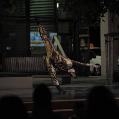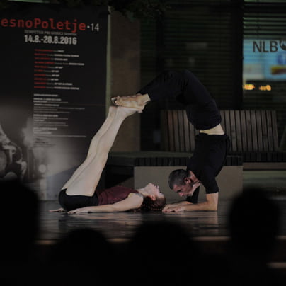 Nastja in Michal sta zaplesala svoj novi duet, koreografski utrinek iz svojega projekta Zarota tišine, ki nastaja v koprodukciji SNG Nova Gorica, ga zrelo povezovala in spletala z novimi partnerskimi oblikami na glasbo Olafur Arnalds, Sleeping at last / The Cranberries, tudi zaživela v novi barvi medsebojnega odnosa, dopolnila pa z nekaj akrobatskimi prvinami. Zakaj in kaj akrobatika pomeni za projekt, prav gotovo sledi odgovor na odru ob premieri 3. novembra v Novi Gorici. … Kate Jablonski … (foto: Davide Blasini)
