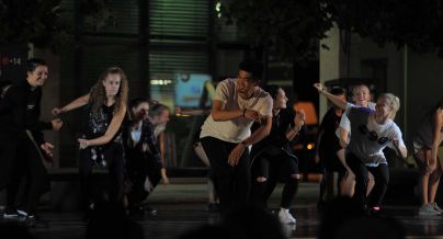 V enaki dinamiki moderna in jazza, kot so zaplesali njeni učenci, je Kate zavela svoj vihravi ples po odru , njeno nasprotje pa je bil Mašin meditativni nastop sodobnih razpotegnjenih linij, globokih pozicij in drsnih oblik. Da so največ glasnih vzklikov poželi učitelji hip-hopa, je prav gotovo razumljivo glede na zasvojenost mladih s pouličnim plesom. Ko je zaplesal njihov Miha in sta v duetu zaplesala še njihova EZtwins, je zavladalo navdušenje, ki se je samo še stopnjevalo, ko se je duetu EZtwins pridružil še Anthony, in to je bil šov, ki ga težko zaslediš na zaslonih, zabavni ples treh moških in treh klobukov. … Daša Grgič … (foto: Davide Blasini)
