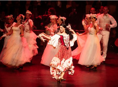 Koreograf Sándor Román odlično vlada plesnemu prostoru in prostorskim kompozicijam skupinskih plesov, kjer se skupina plesalcev naenkrat zbere, zapleše ali poigrava v stilu zabave, in za povrh se izvije še atraktivni ples brez glasbe, le v ritmu korakov v škornjih, ´tapkanju´ dlani po telesu in ploskanju, ko posebej močno zacingljajo ostroge ob potrkavanju pet v poziciji trikotnika; ko peti trčita, odpirata pa se špici obuvala. Zaplesane folklorne kompozicije so pristno madžarske, tako kot ciganska in plemiška oblačila, ki so jih iskali celo v muzejih (scena: Zsolt Meskó, kostumi: Ildikó Debreczeni). Na koncu se nikakor ni nehalo plesati, ampak se je še poskakovalo tudi ob glasbeni spremljavi in simpatičnem vabilu vodje orkestra (István Lendvai Csócsa) k novemu zagonu plesalcev ter glasbenikov, tako da so gledalci kar neutrudno ploskali.