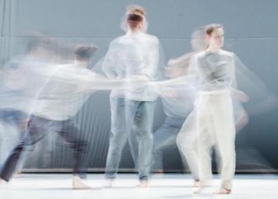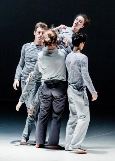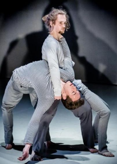 Plesalci ansambla EnKnapGroup – Luke Thomas Dunne, Ida Hellsten, Bence Mezei, Jeffrey Schoenaers in Ana Štefanec – so skozi dvojni plesni večer predstave Zamah na robu v Španskih borcih preizkušali in iskali fizične ter psihološke meje lastne telesne biti.