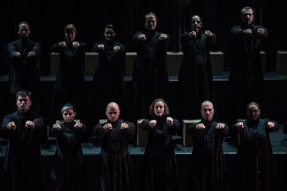 Če sta prišli v Galeriji do izraza tihota in milina gibanja Nine Fajdige, ki je prevetrila galerijski prostor zatopljenih pogledov in misli, so v Operi Ljubljana premierno izvedli glasbeno-gledališki projekt Karmine Šilec Evergreen, ki je kar gromko razburil svet ljubiteljev operne klasike. Zgodba o Orfeju, ki je iz podzemlja rešil svojo dušo s pomočjo glasbe, je eden največjih mitov, ki ga je glasbenica Karmina Šilec vpletla v svoj kompleksni avtorski projekt in spletala spomine na kultni ledolomilec Titanik, na zadnjo filmsko sceno J. Cameronovega filma (1997). To je scena, ko glasbeni kvartet igra na potapljajoči se ladji vse do konca, medtem ko rešilni čolni svetijo z reflektorji in iščejo možne preživele na morski gladini, ko se avtorica sprašuje o močeh (božanske) glasbe, ki tolaži ter kanalizira strah pred smrtjo. Na predstavi (14. 10.) v Operi Ljubljana so me fascinirale tri scenske slike, kjer je poleg petdesetčlanskega zbora in odlično odigrane solistične vloge tenorista, animatorja ter dobrega gibalca Aca Aleksandra Biščevića k.g. vsebinsko iluzijo kovala moč svetlobne-scenske kompozicije scenografa Marka Japlja ter oblikovalca luči Andreja Hajdinjaka, ob svežini koreografske animacije Gregorja Luštka, ki je dobro razgibal odrski tok dogajanja. Slike si sledijo in se gledajo kot ‘post festum’ dogajanja na ladji pred in med plovbo, so nekakšna grozljiva refleksija znanih tragičnih dogodkov, predstavljenih na filmskem platnu. Mogočno scensko vizijo prve scene poustvari razsežna svetlobna sivina otovorjenih potnikov, ki vlečejo s seboj svojo kvadratno prtljago. Te upognjene in obtežene silhuete se počasi premikajo po veliki odrski površini in se sprašujejo o svojem potovanju znanega konca. Druga slika vnese v prostor nove atraktivne scenske premike ter množične koreografske utripe, ko se začne siva masa potnikov dvigati vrsto za vrsto na premičnih odrskih podestih in ko silovita zborovska moč vzvalovi še v gibanju, saj so na sceni prisotni večni mornarji, ki veslajo po (nevidni) reki Had. Povsem zaslepljujoča pa je zadnja scena bleščeče beline v prvem delu predstave, ki se magično dviga iz pododrja in ko se v nadnaravni svetlobi zrcalijo popačene karikature skrčenih gibov, tiste salonske ‘noblese’, ki je bila v vsem svojem življenjskem blišču predstavljena na filmskem platnu. Evergreen je naletel na deljena mnenja; nekateri so bili navdušeni, drugi razočarani. Predstave za zdaj ni na sporedu ljubljanske operno-baletne hiše. (Foto: Darja Štravs Tisu)